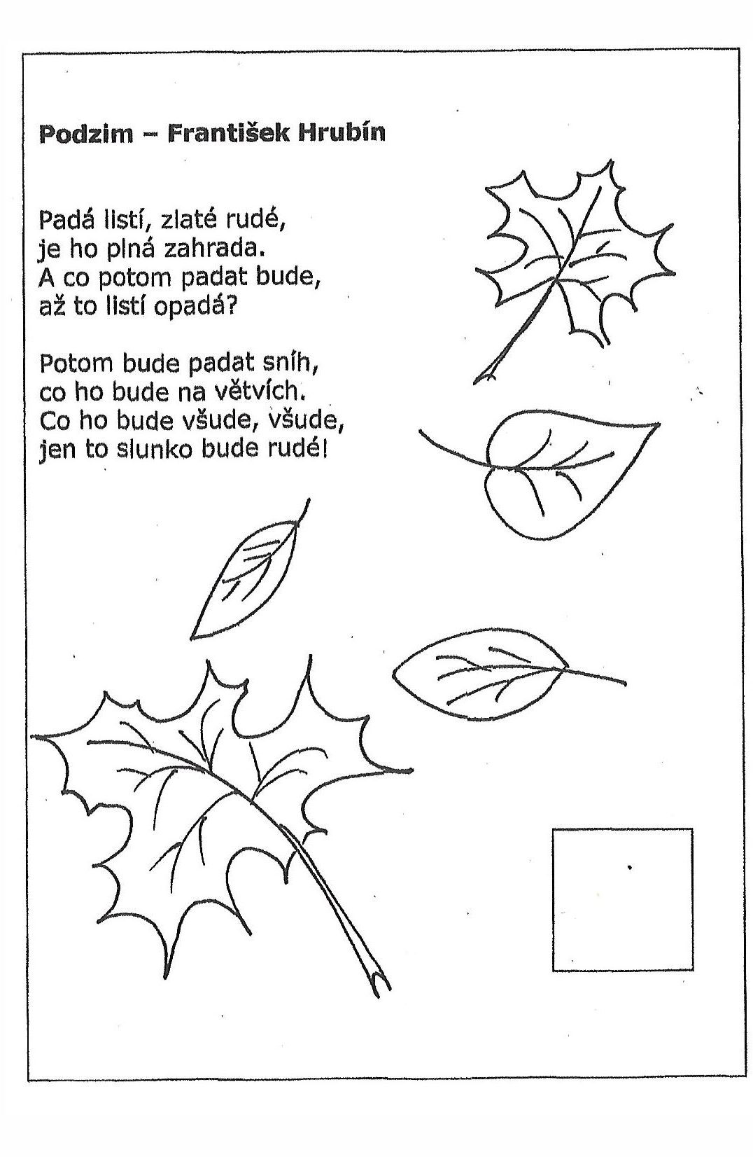 Básnička Fr. Hrubín, Podzim Zkuste slova z básně vytleskat, určit počet slabik,
