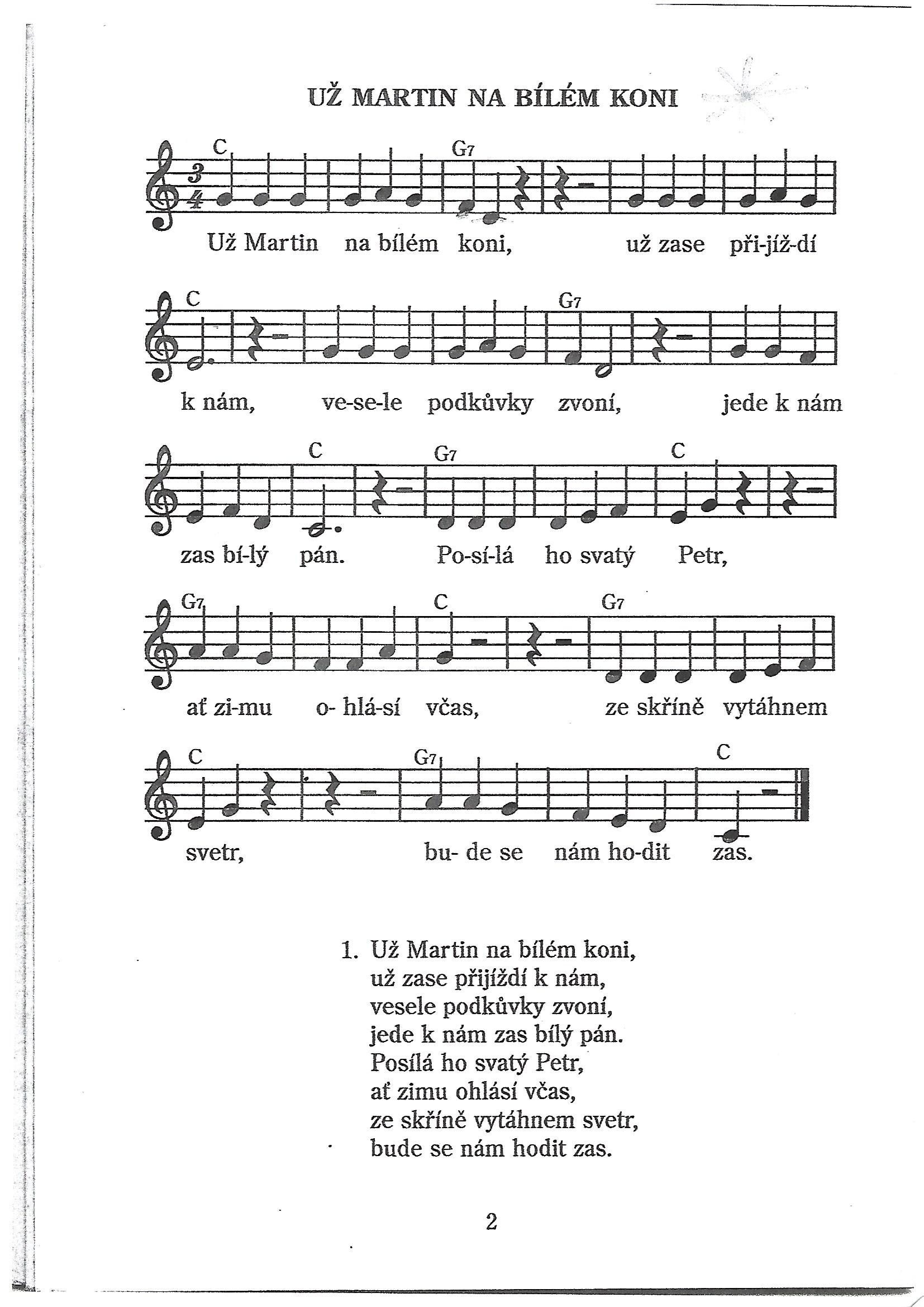 Písnička Už Martin na bílém koni Naučte se text, vytleskávejte, rytmizujte
