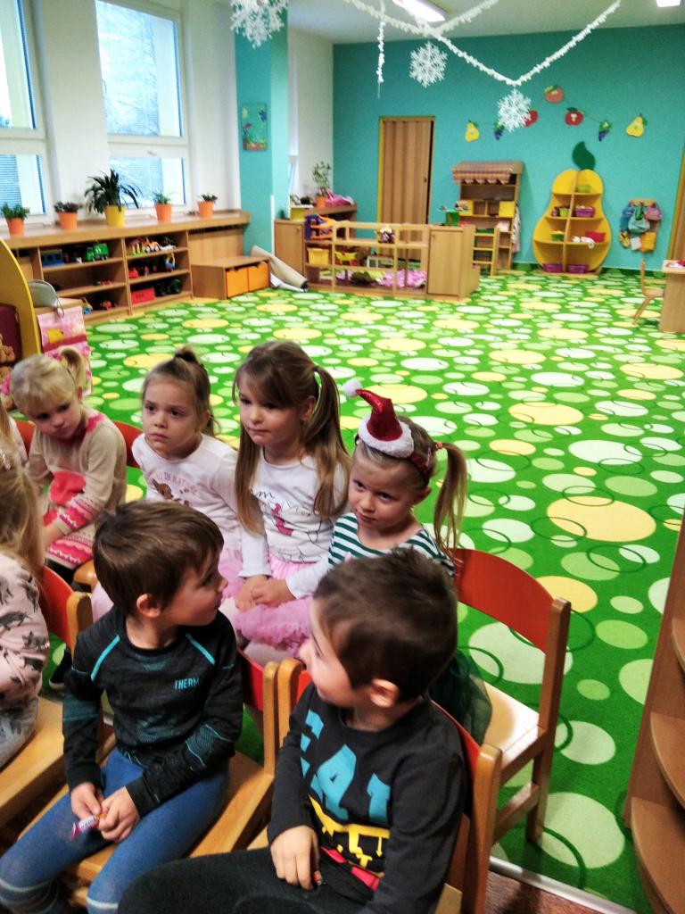 Navštívil nás Mikuláš s andělem a čertem, zazpívali jsme jim, zarecitovali básničky a oni nás za odměnu obdarovali balíčky.