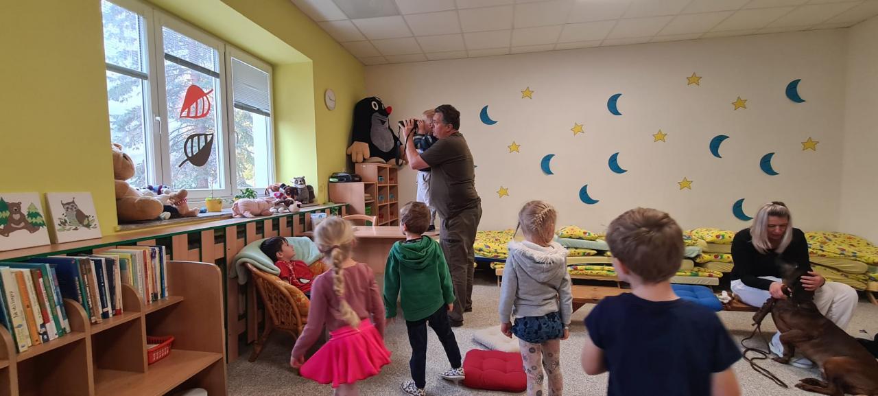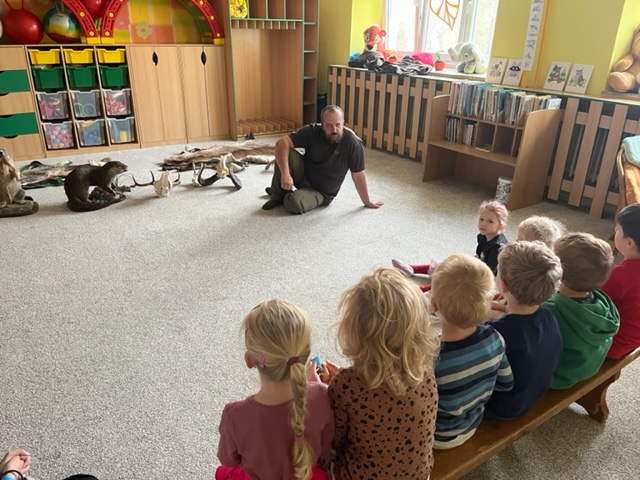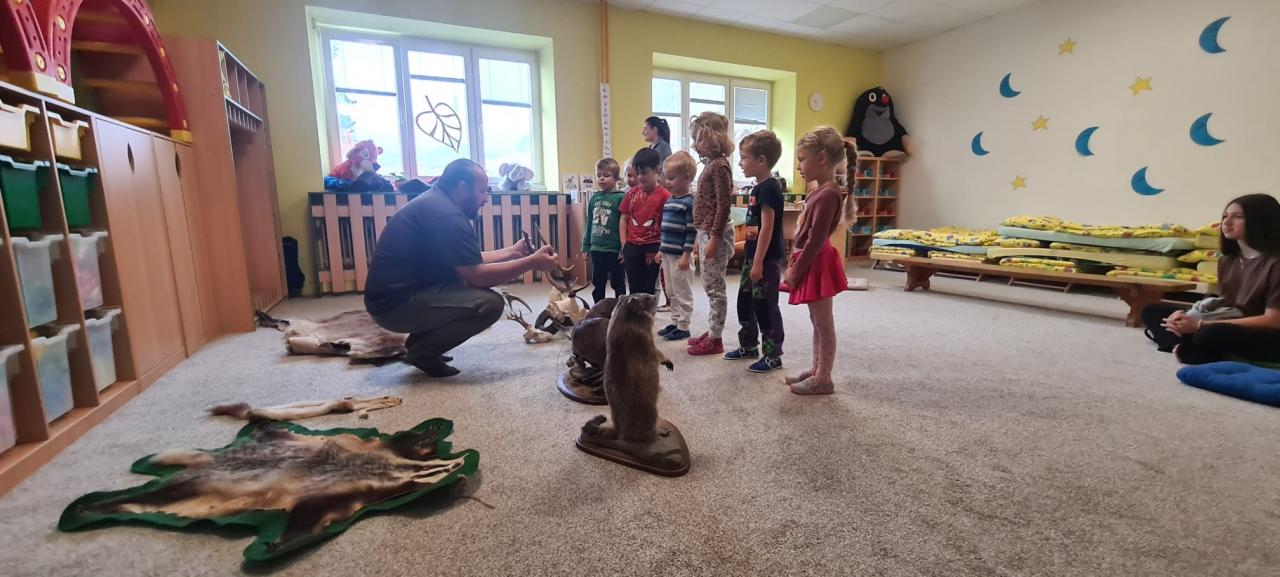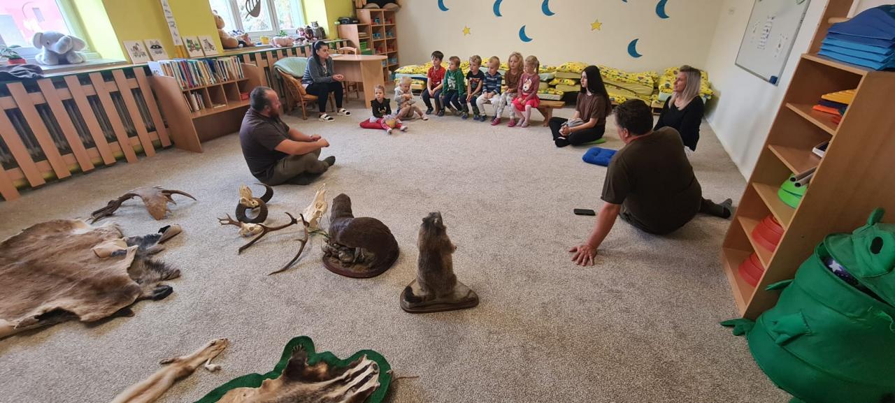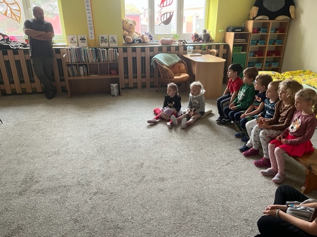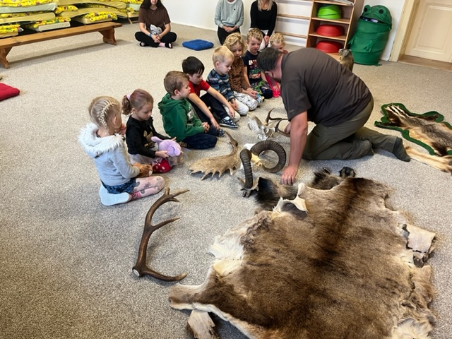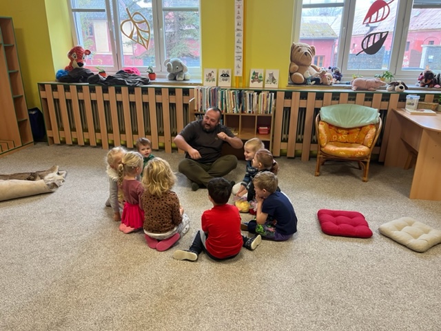V rámci tématu jsme si do školky pozvali lesníky. Děti se dozvěděly spoustu informací o životě v lese, měly i názornou ukázku v podobě vycpaných zvířat, srstí...