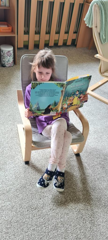 V rámci klidových činností mají děti k dispozici čtenářská koutek, kde si mohou prohlížet nejrůznější zajímavé knihy.