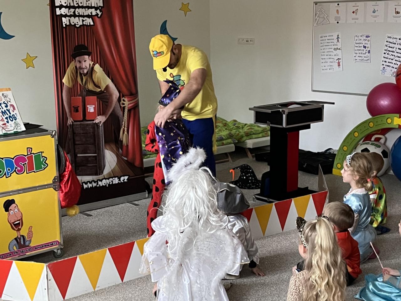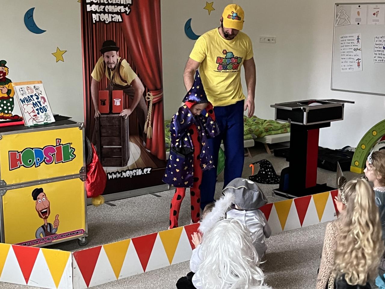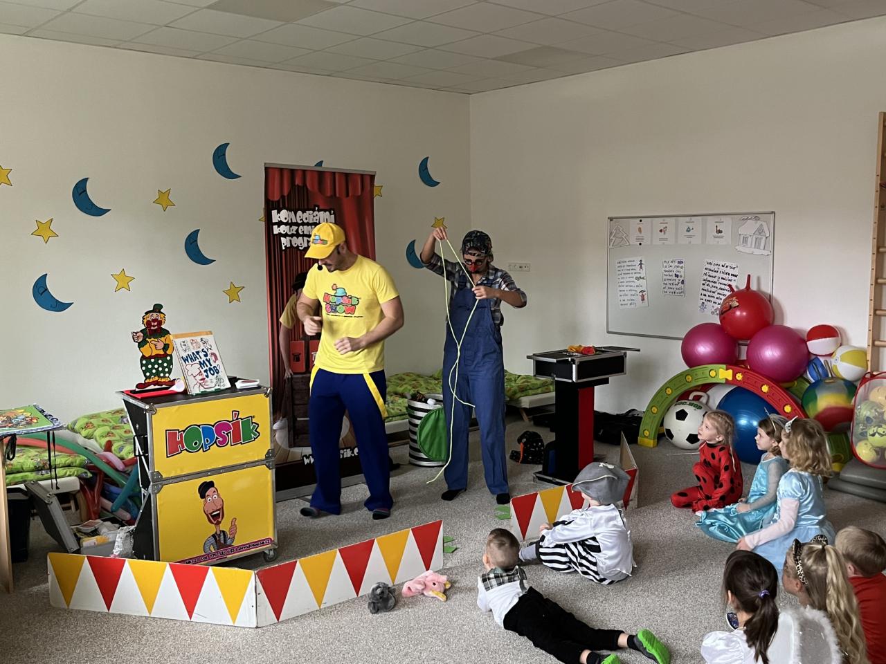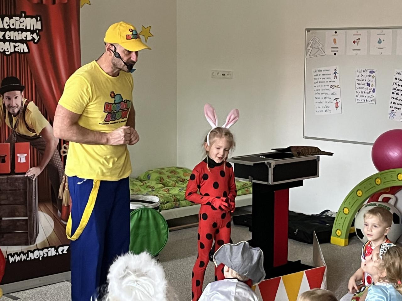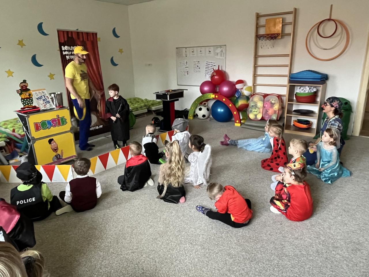 Letošní rok jsme si pozvali Karneval Hopsík. Program byl moc hezký, pestrý, pro děti jak zábavný, tak i poučný.
