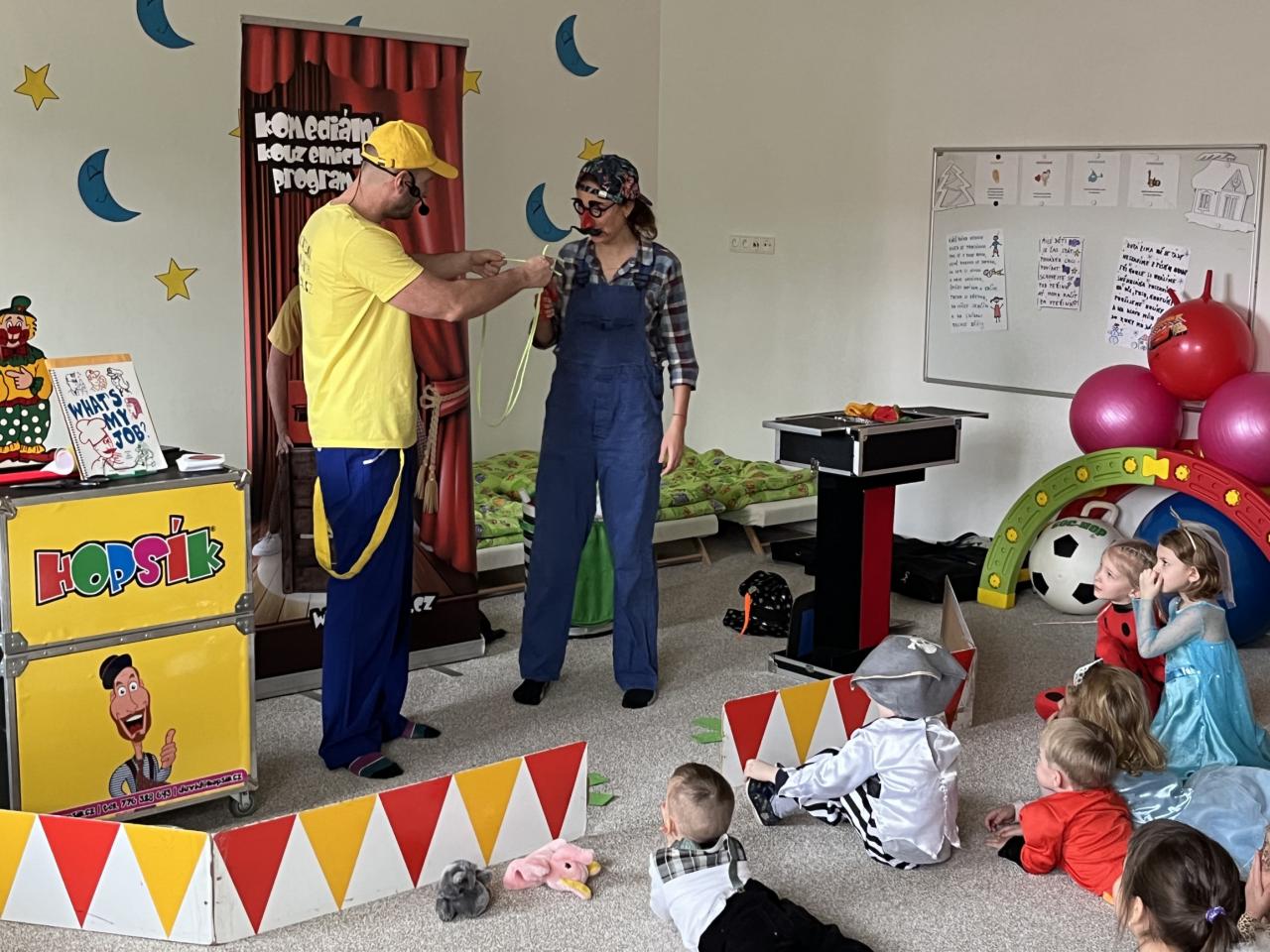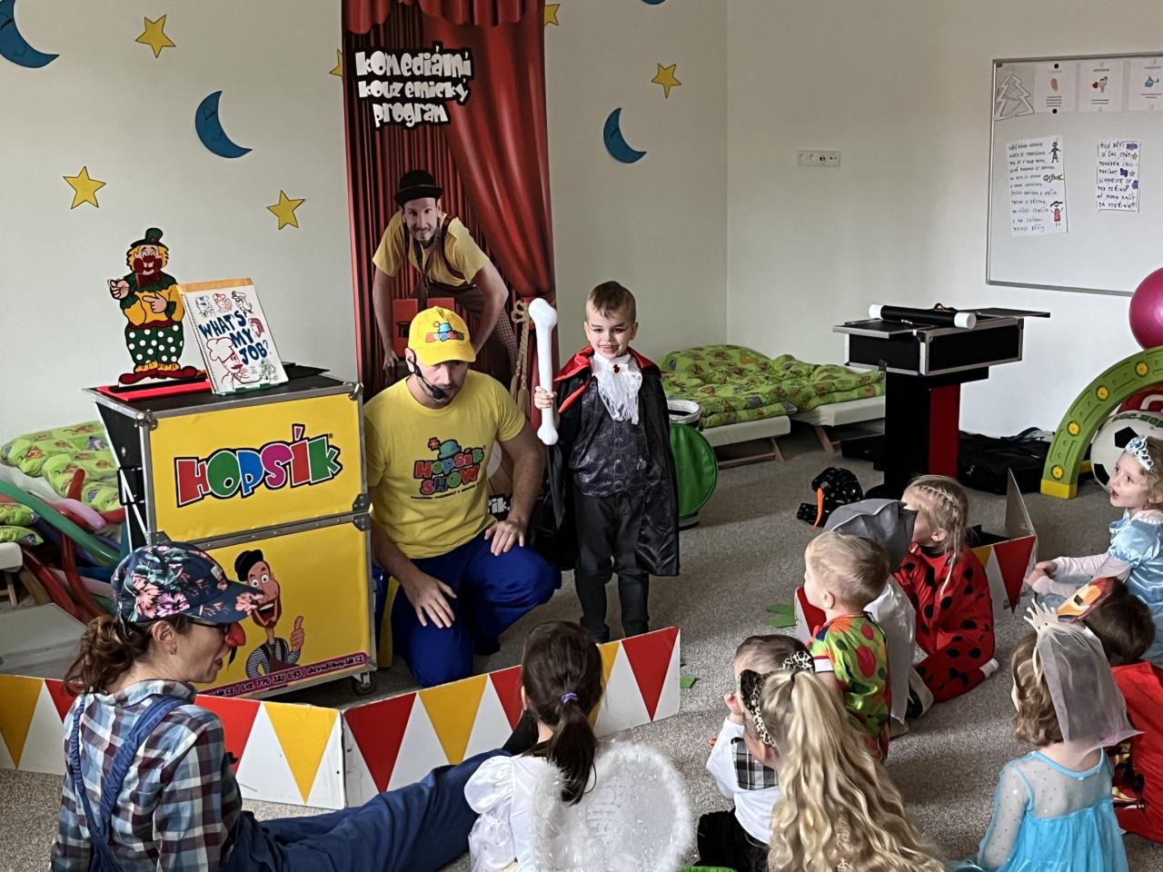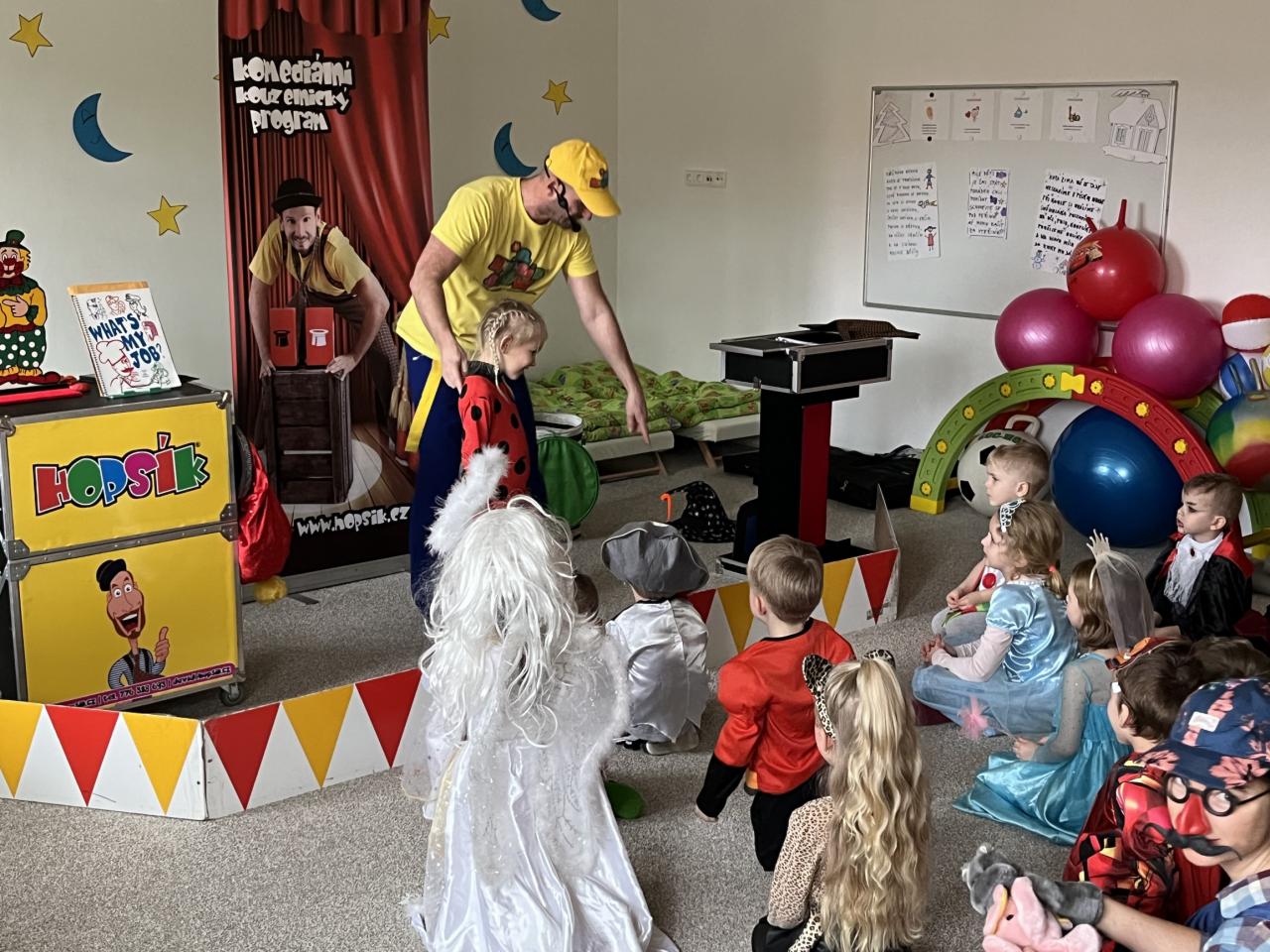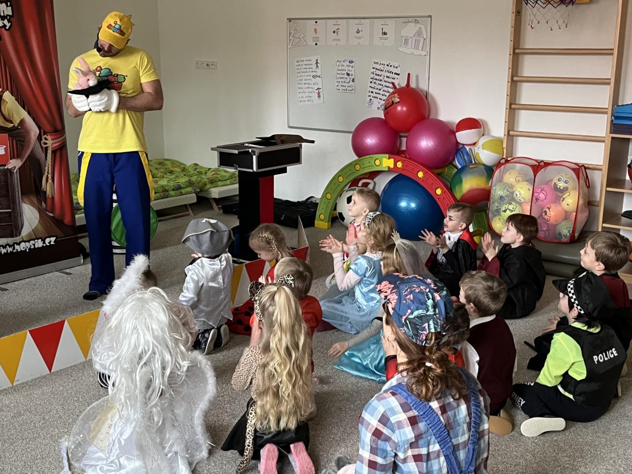 Letošní rok jsme si pozvali Karneval Hopsík. Program byl moc hezký, pestrý, pro děti jak zábavný, tak i poučný.