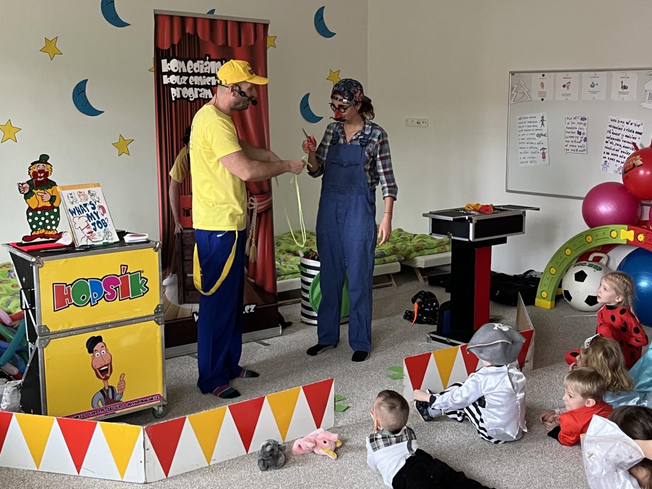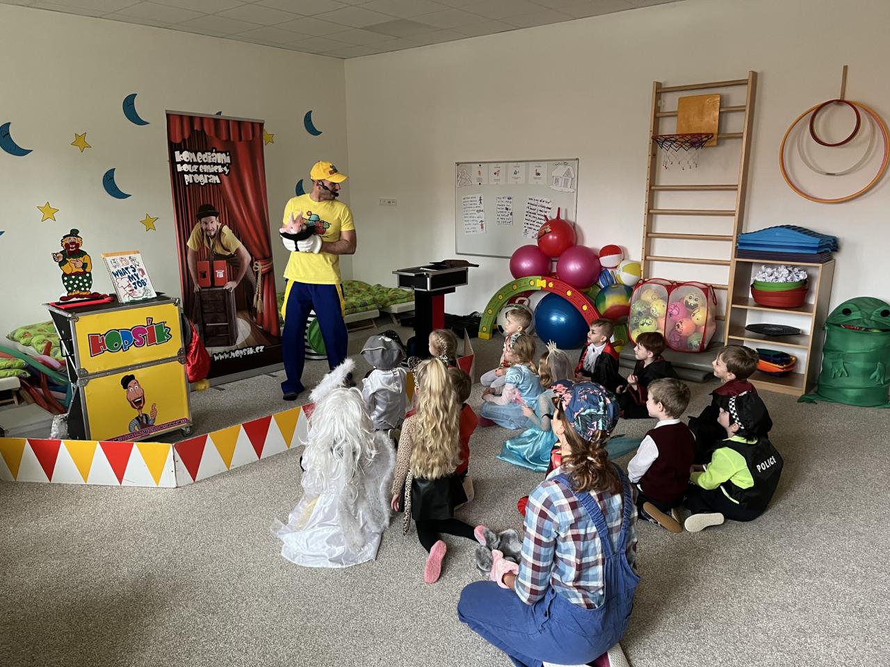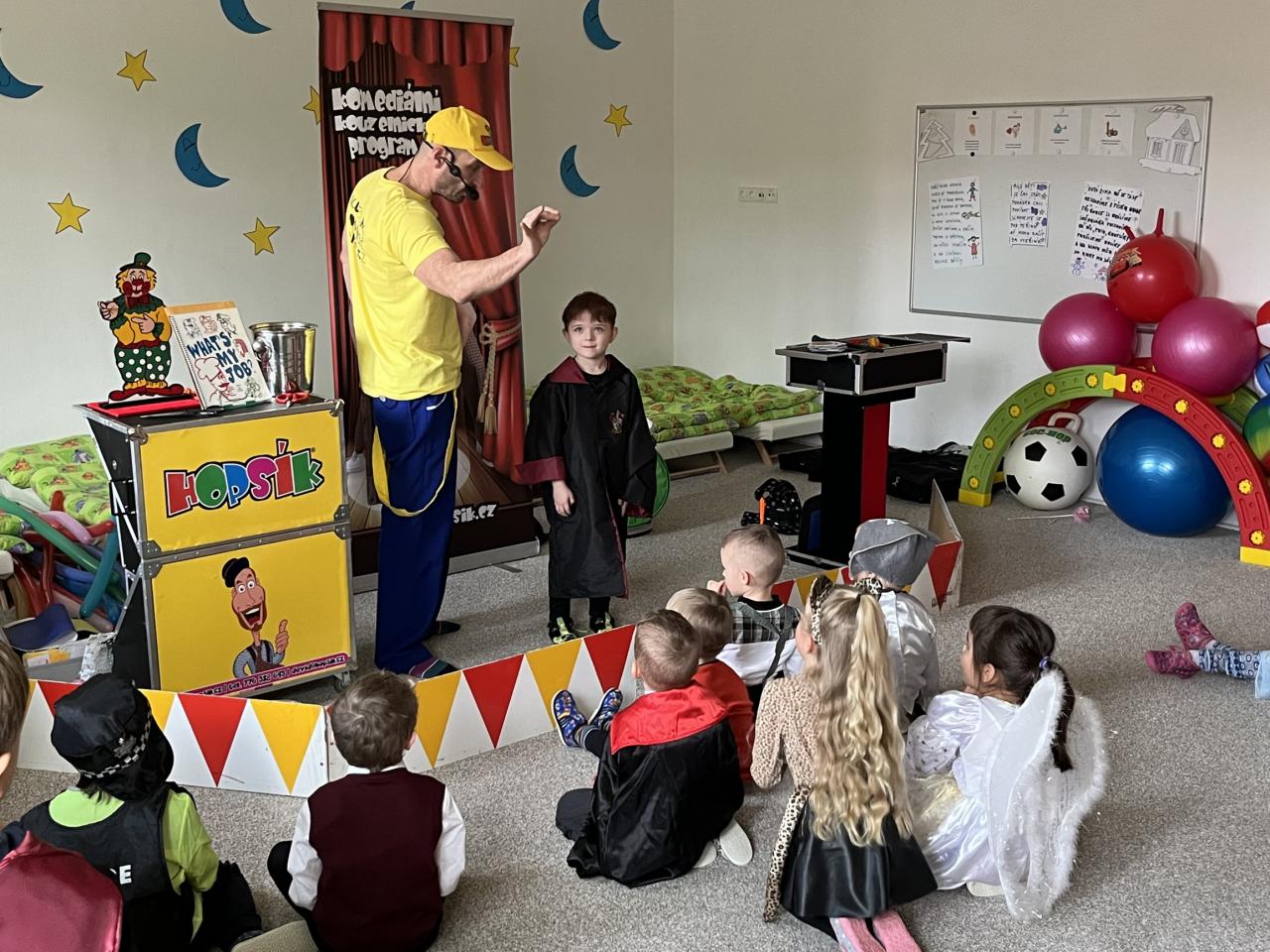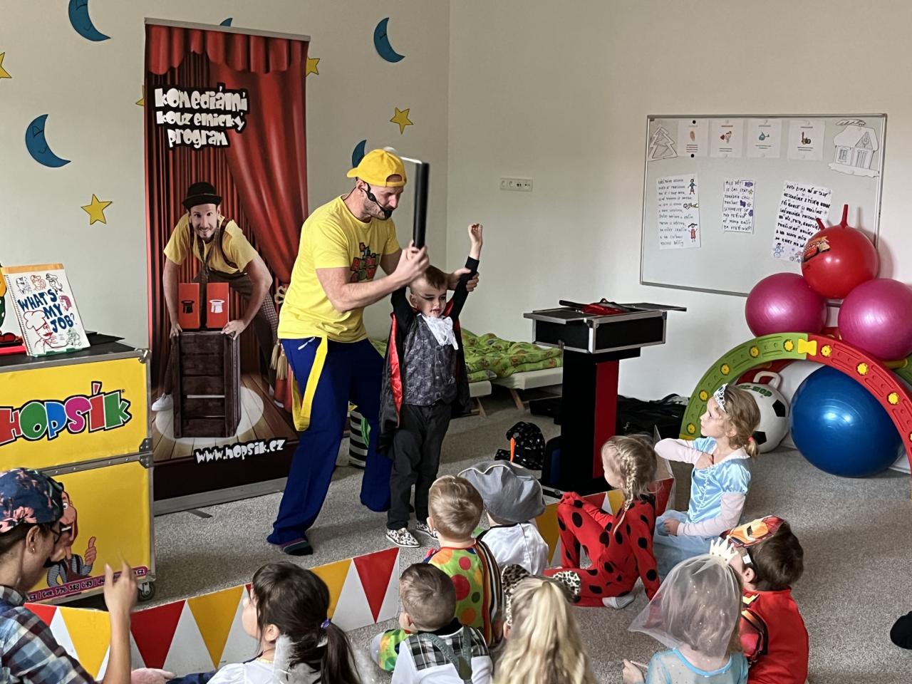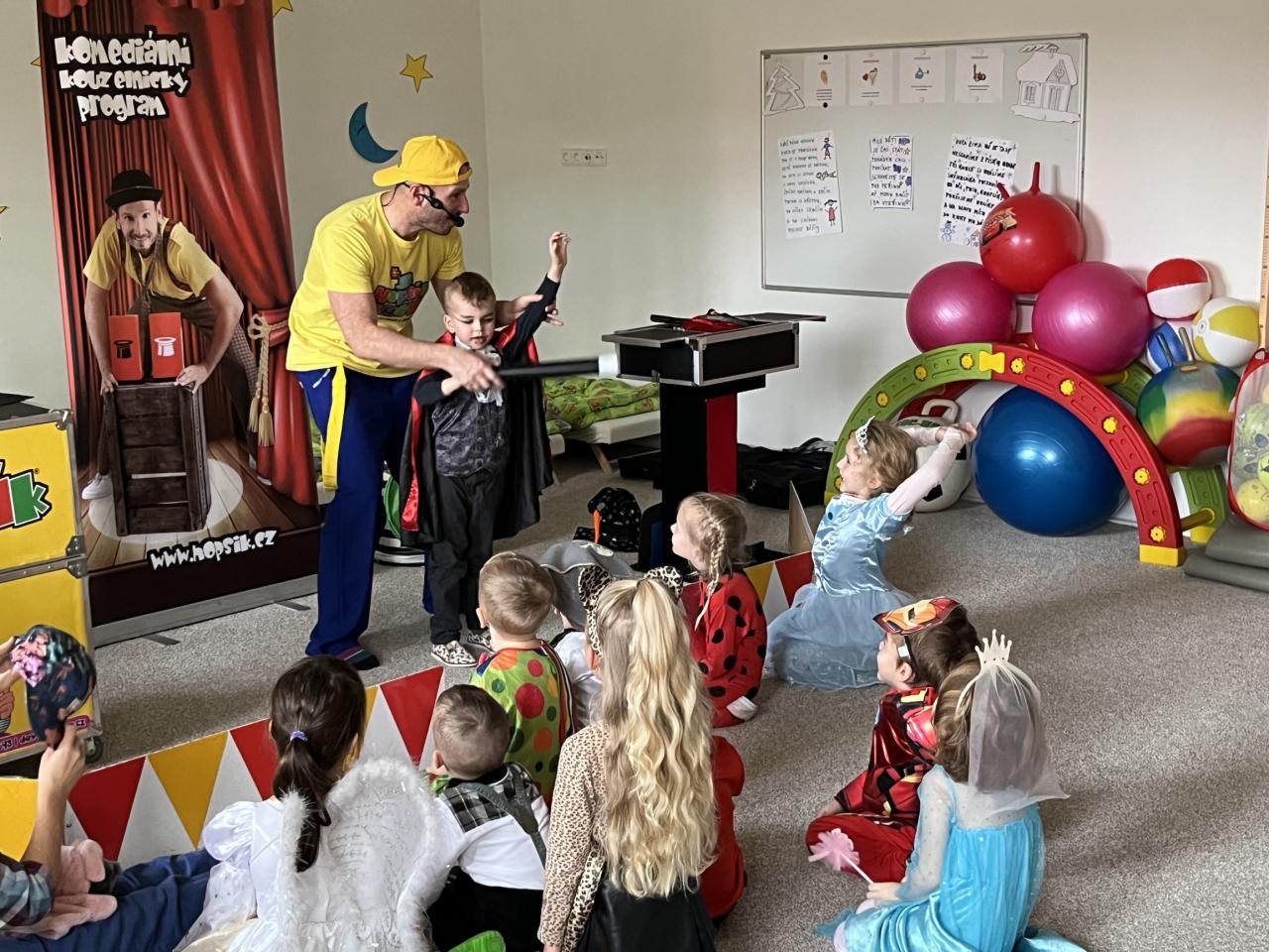 Letošní rok jsme si pozvali Karneval Hopsík. Program byl moc hezký, pestrý, pro děti jak zábavný, tak i poučný.
