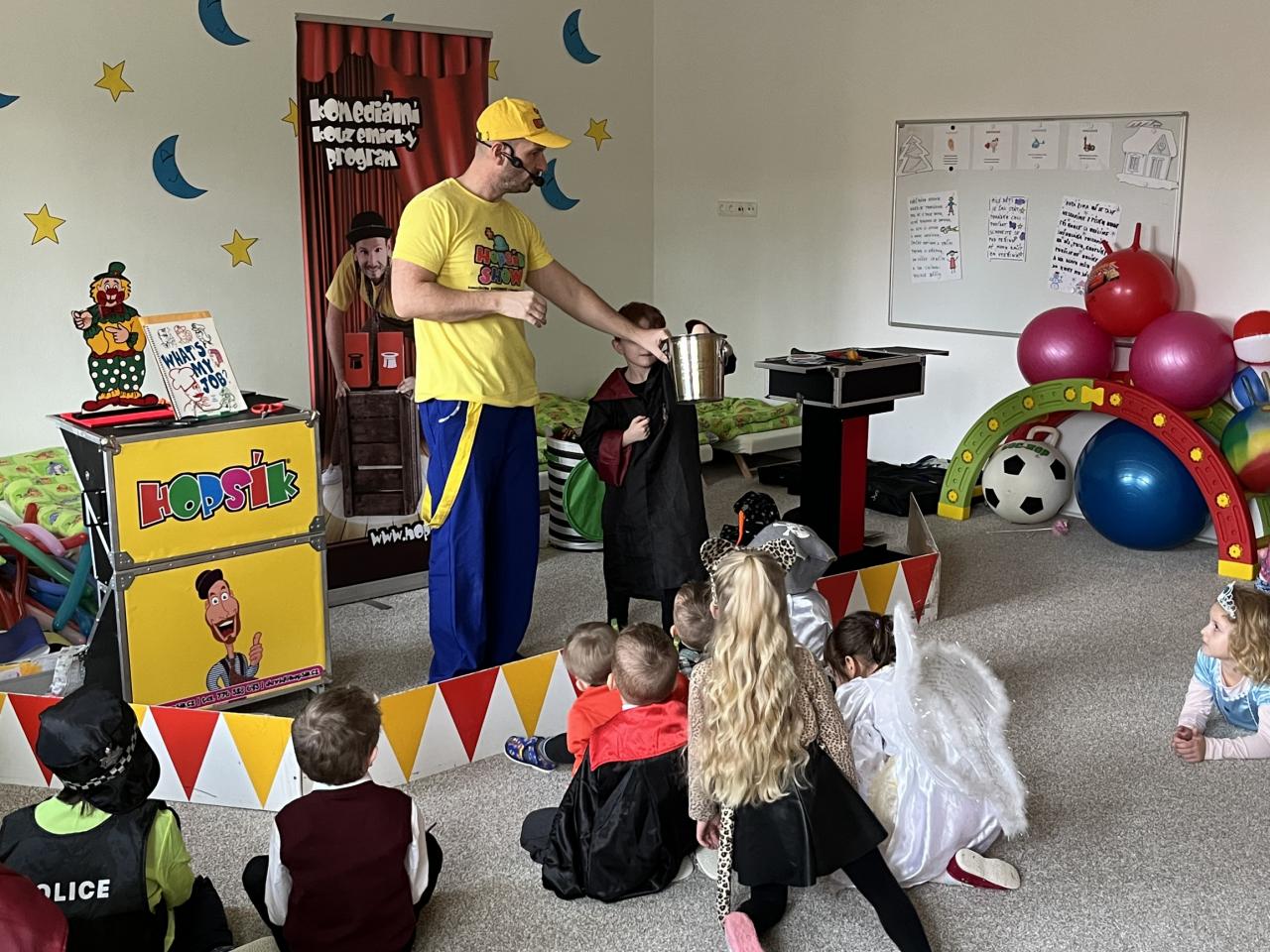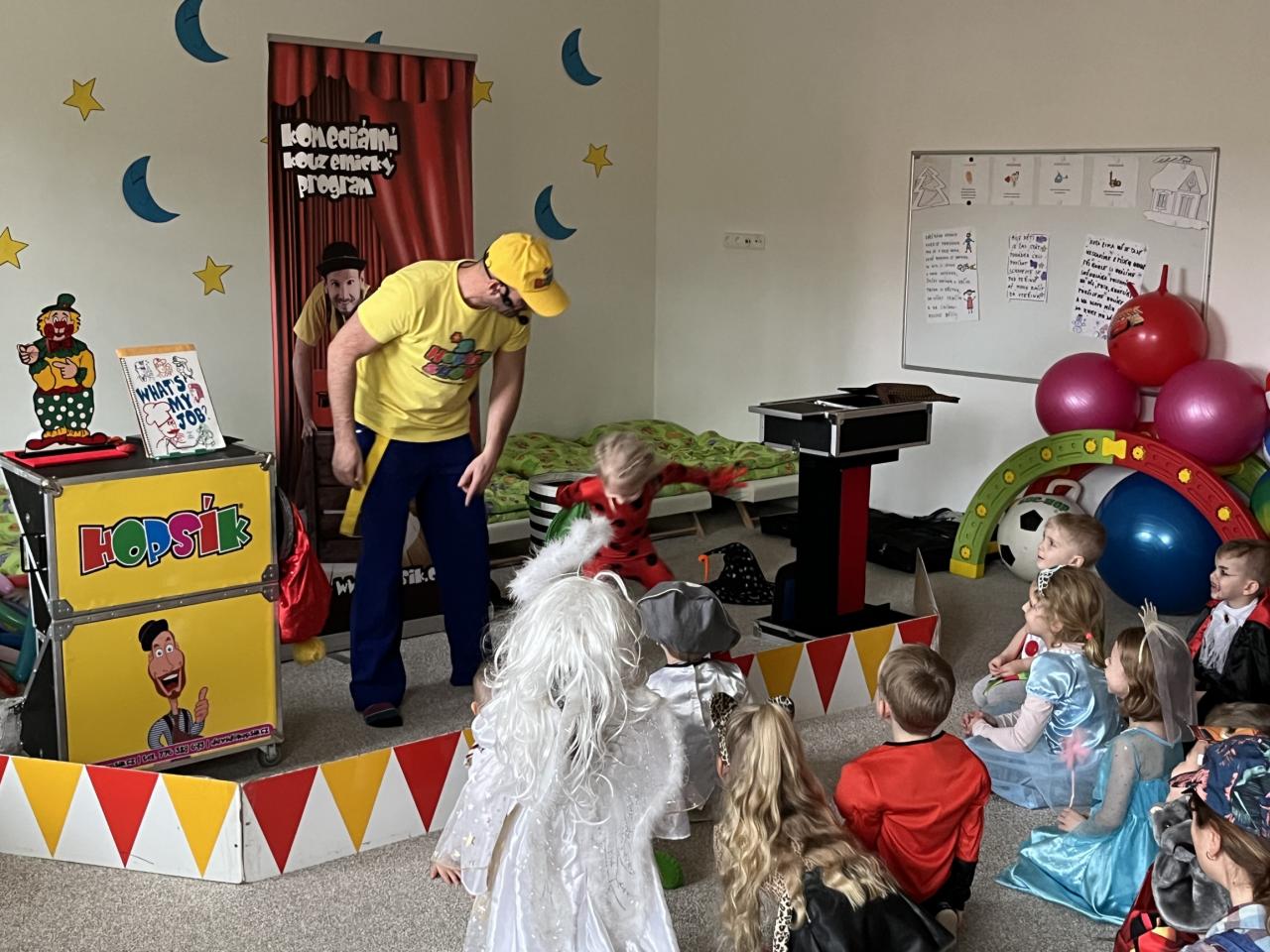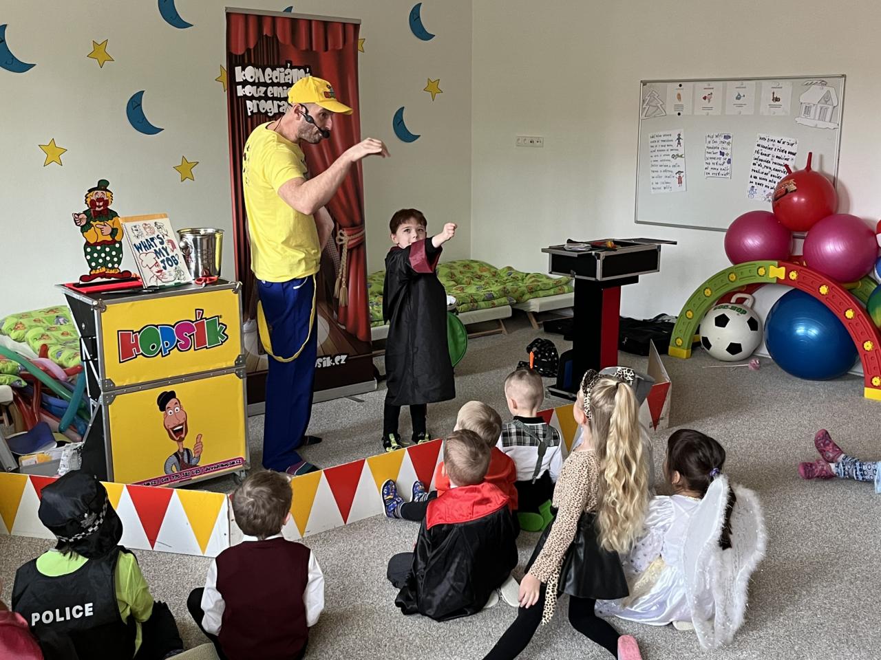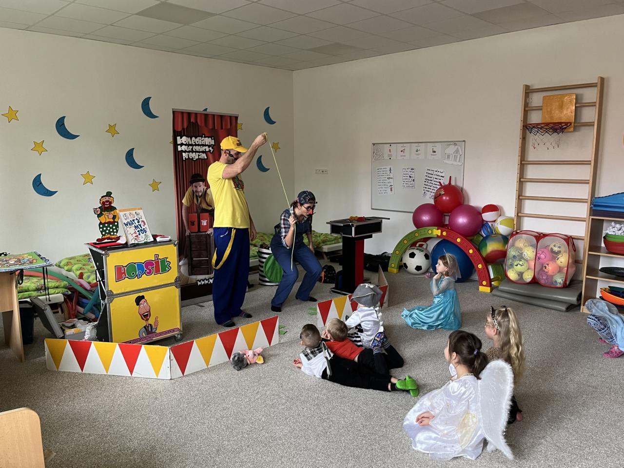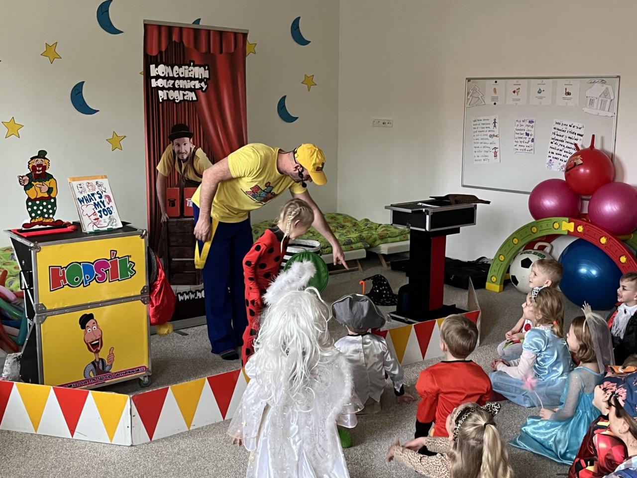 Letošní rok jsme si pozvali Karneval Hopsík. Program byl moc hezký, pestrý, pro děti jak zábavný, tak i poučný.