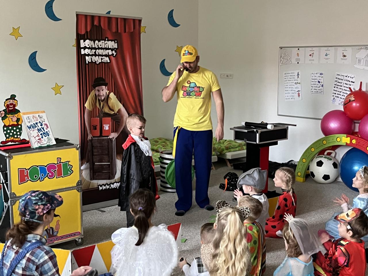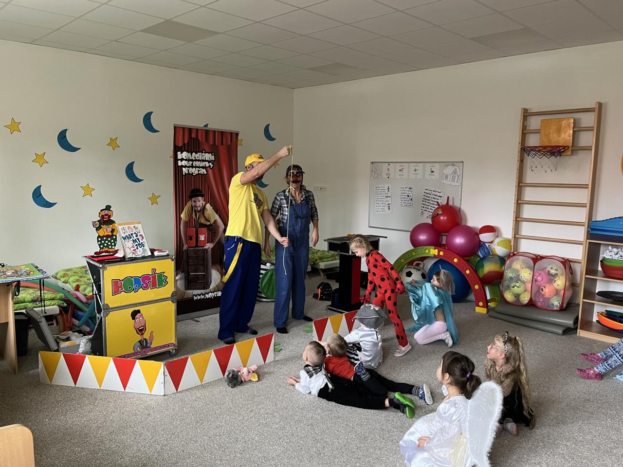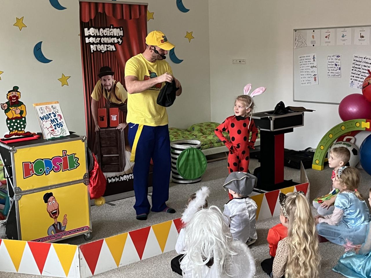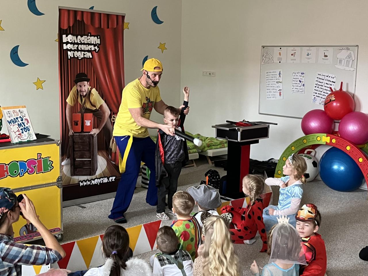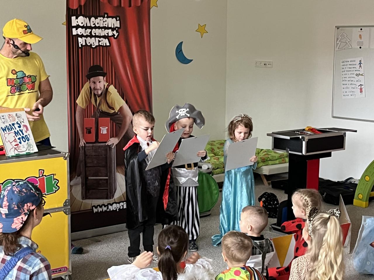 Letošní rok jsme si pozvali Karneval Hopsík. Program byl moc hezký, pestrý, pro děti jak zábavný, tak i poučný.