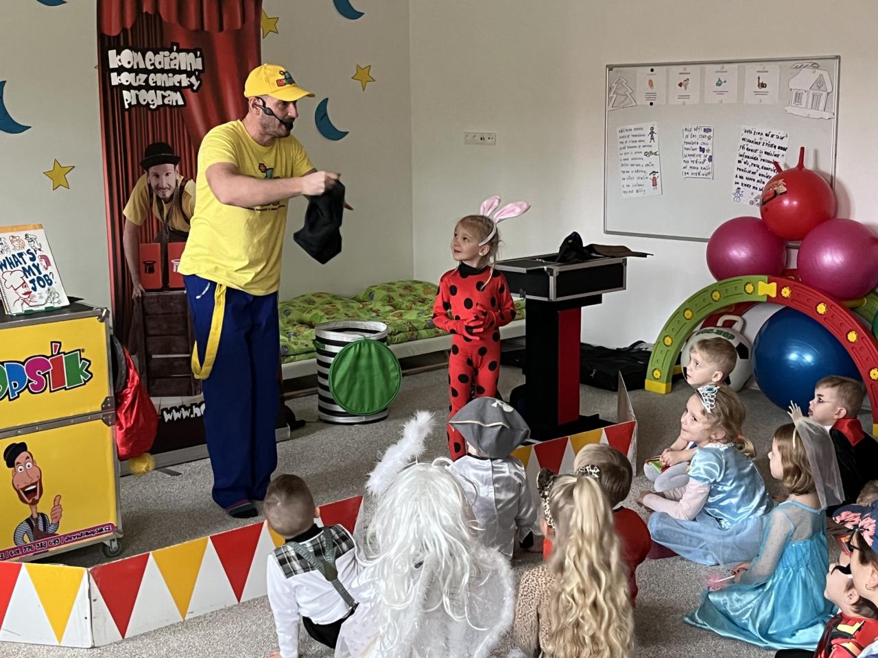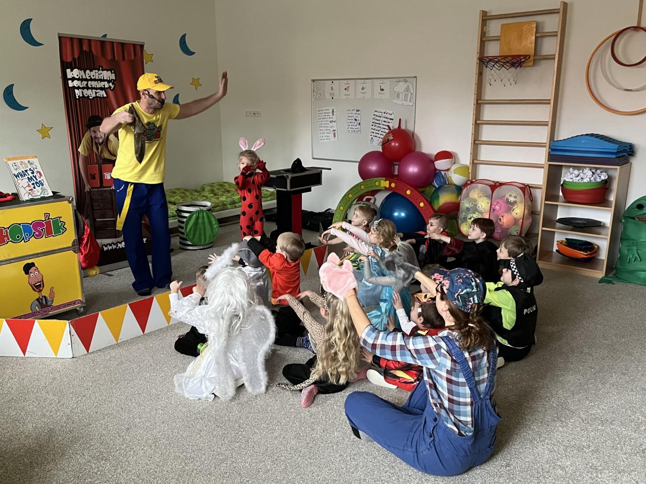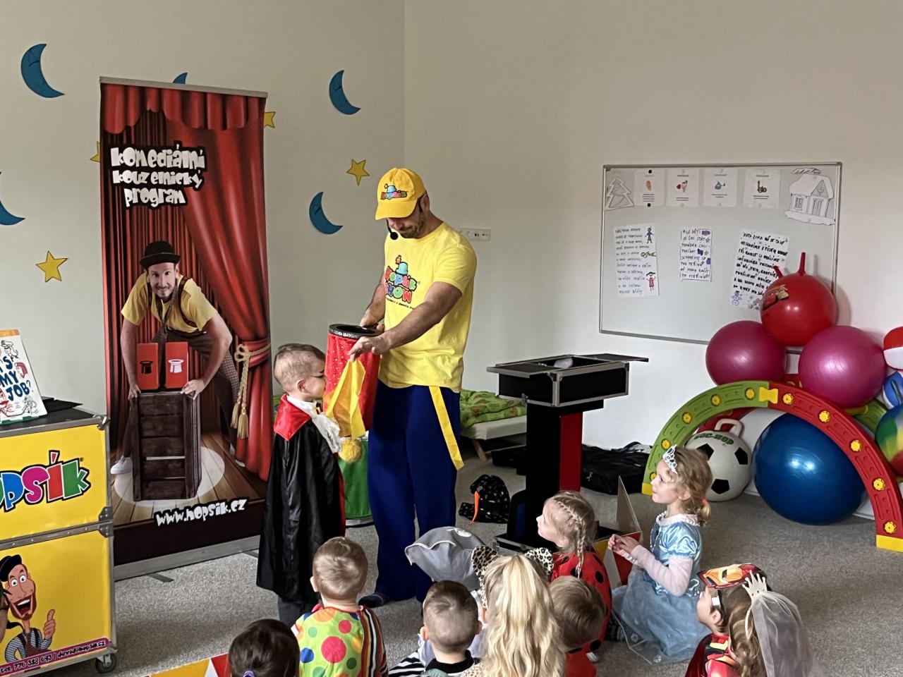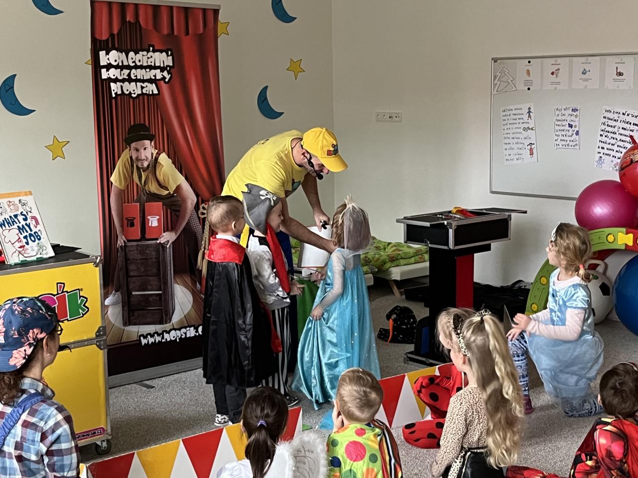 Letošní rok jsme si pozvali Karneval Hopsík. Program byl moc hezký, pestrý, pro děti jak zábavný, tak i poučný.