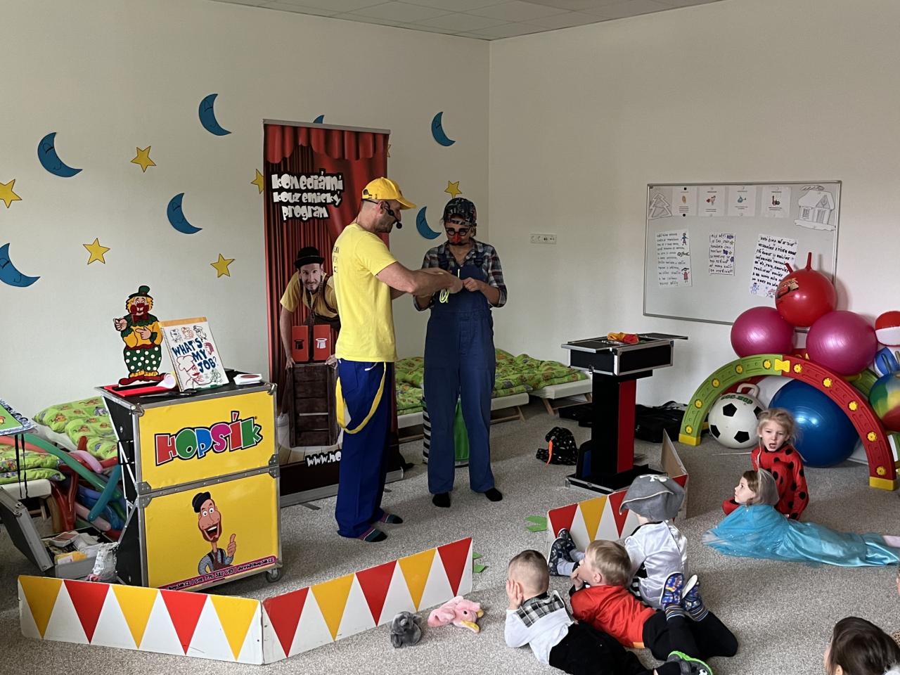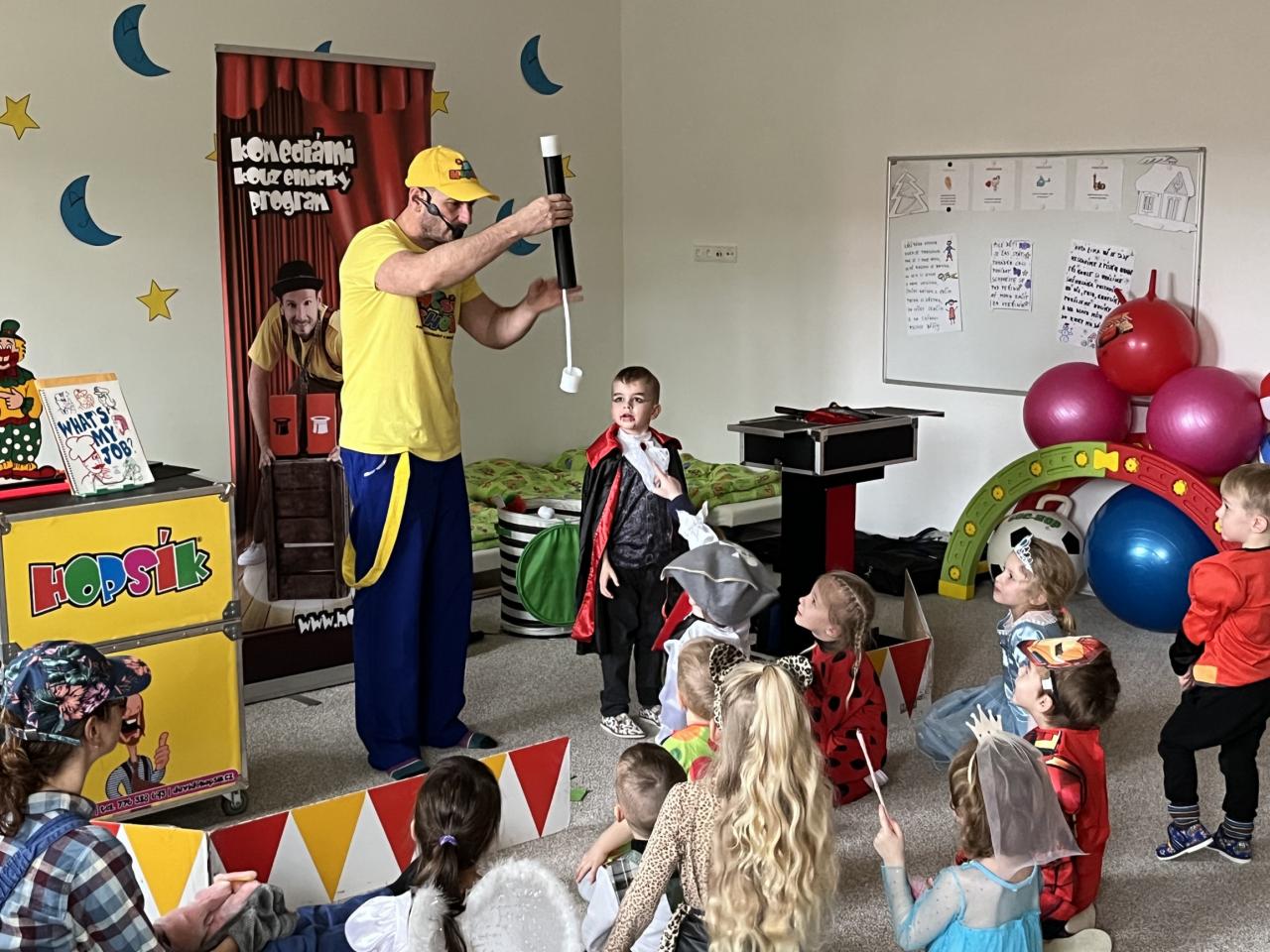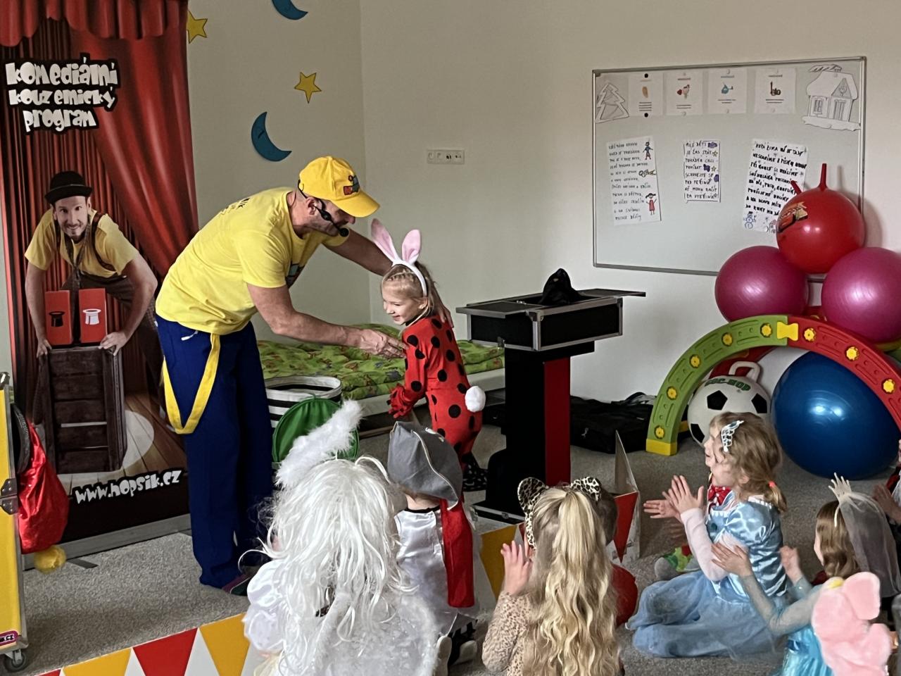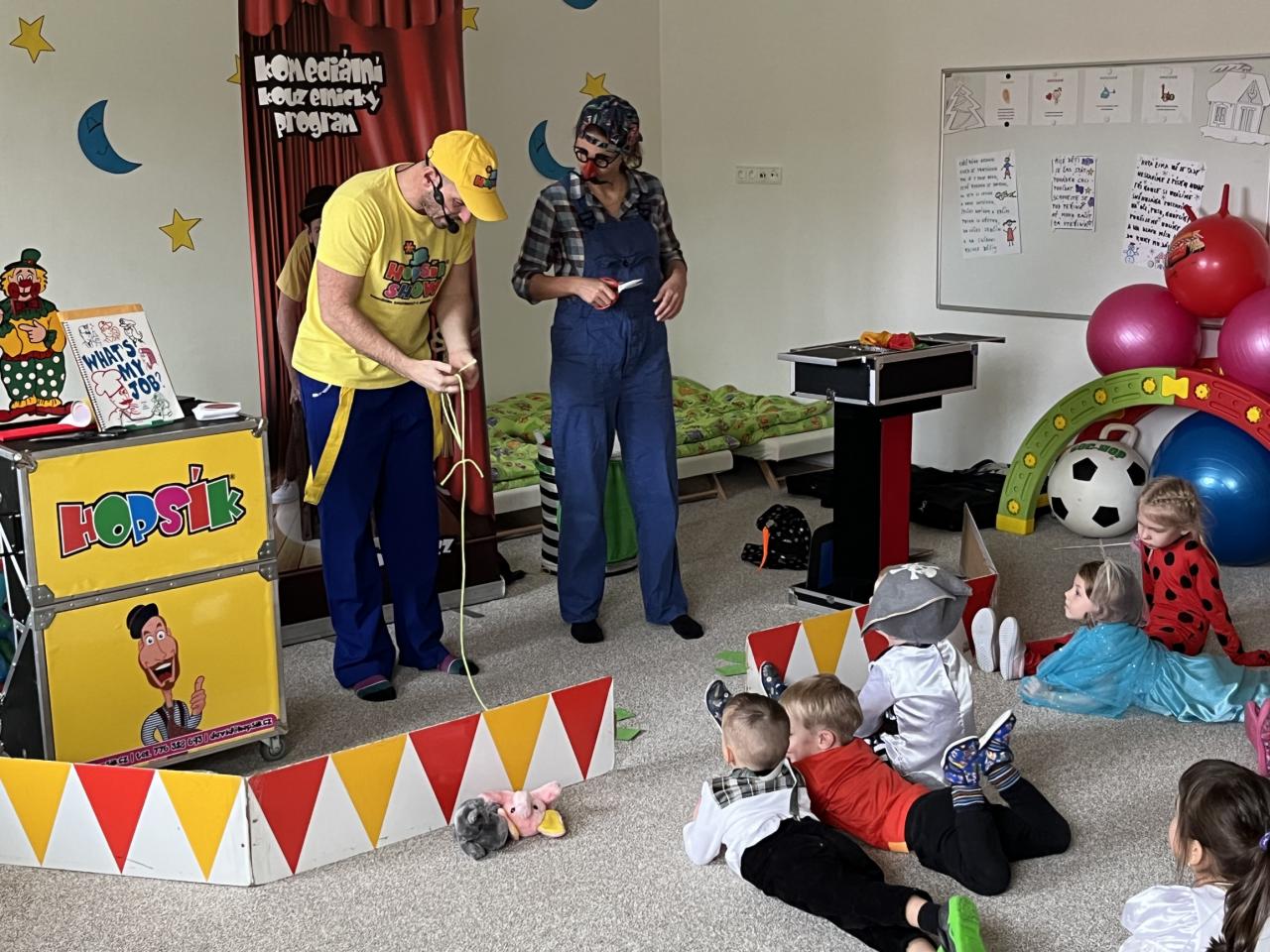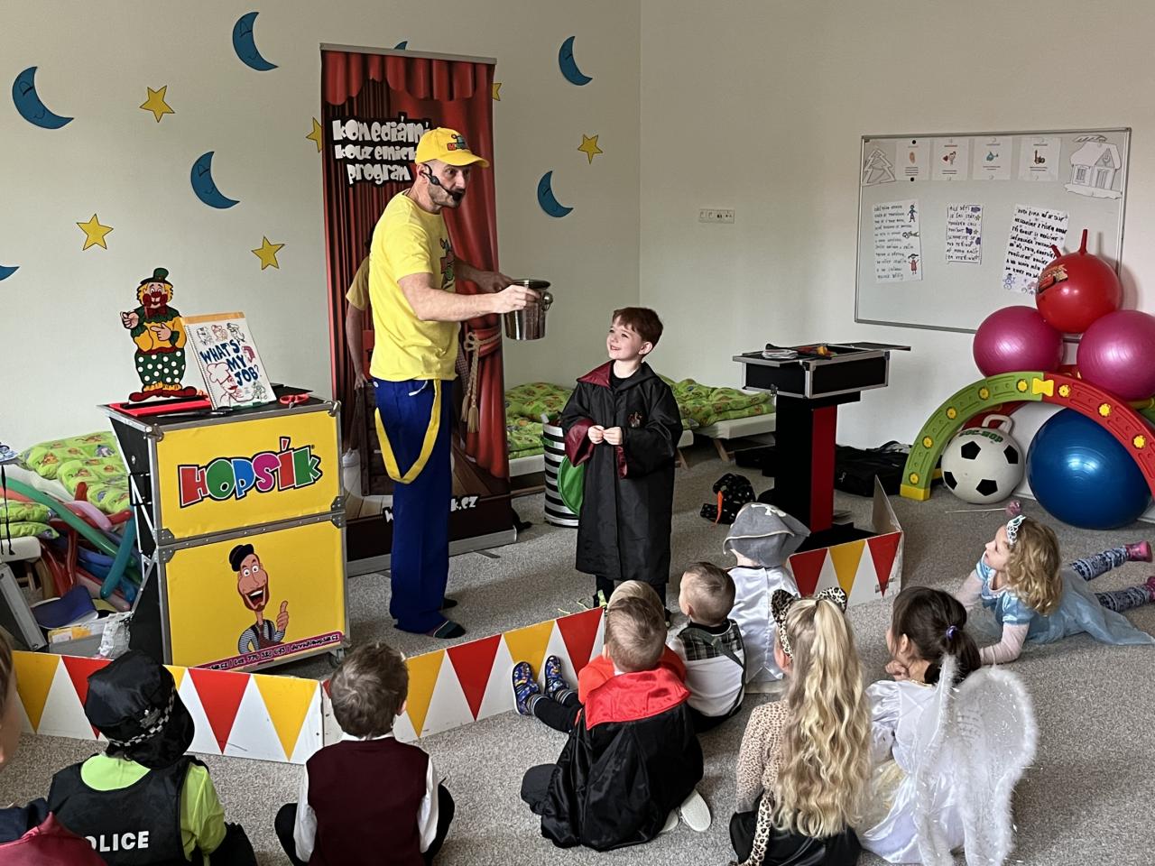 Letošní rok jsme si pozvali Karneval Hopsík. Program byl moc hezký, pestrý, pro děti jak zábavný, tak i poučný.