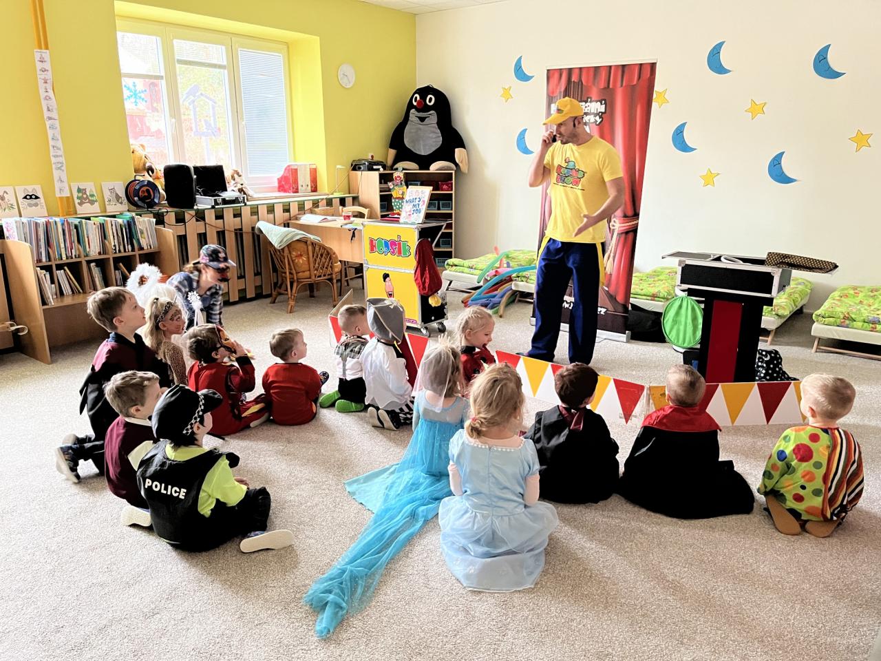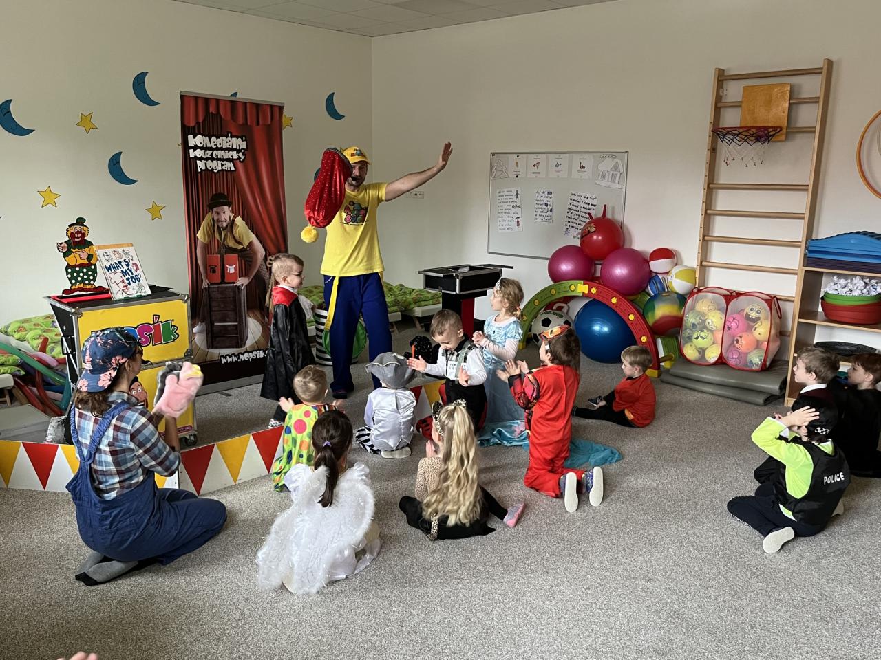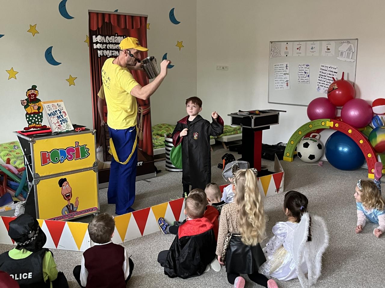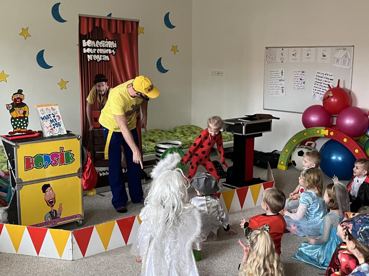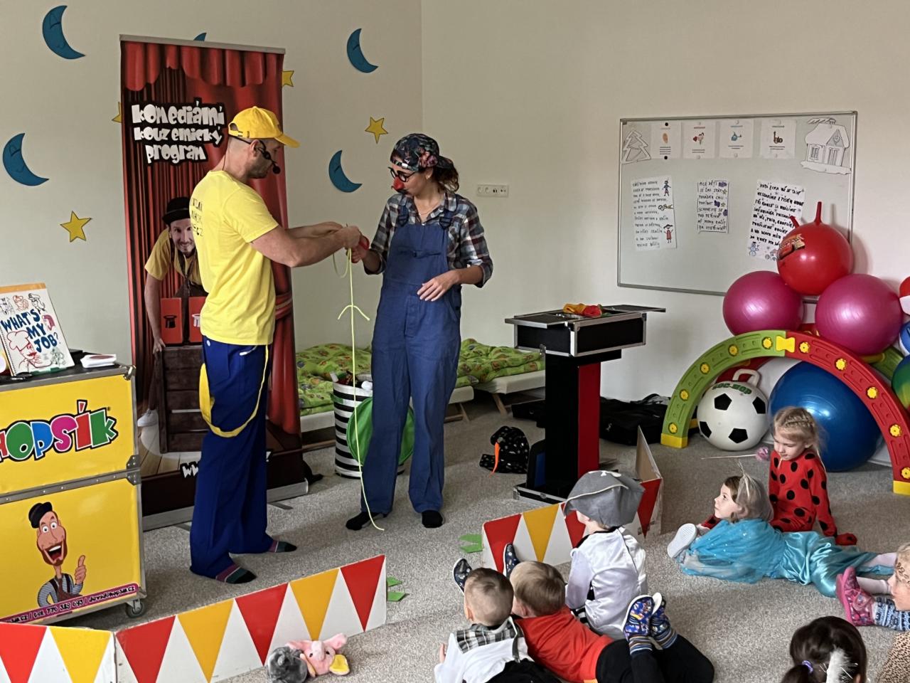 Letošní rok jsme si pozvali Karneval Hopsík. Program byl moc hezký, pestrý, pro děti jak zábavný, tak i poučný.