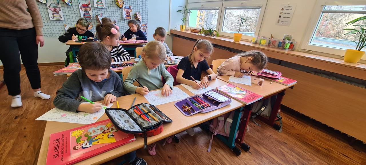 Naši předškoláci se byli podívat v základní škole v první třídě. Viděli, jak probíhá hodina, co žáci s paní učitelkou dělají a co vše dalšího je v první třídě čeká.