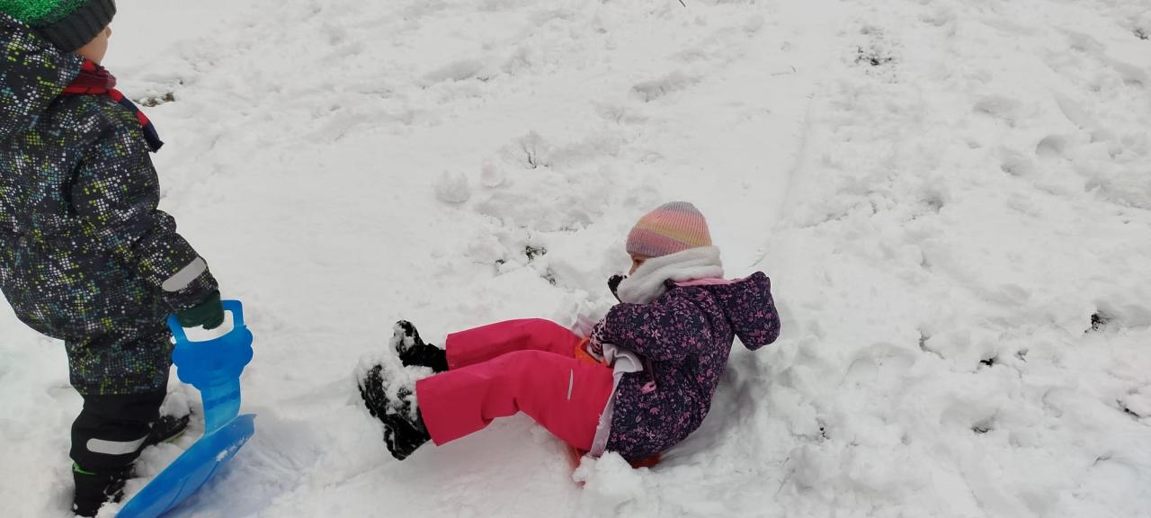 Berušky dovádí na sněhu a se sněhem