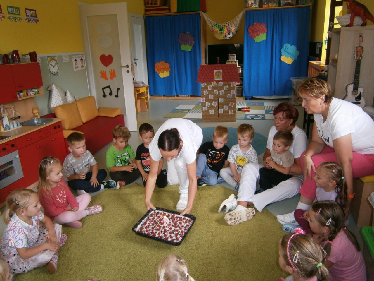"Pošťáček slaví 9. narozeniny. Radostné dopoledne plné her, zpěvu, tance a tvoření.